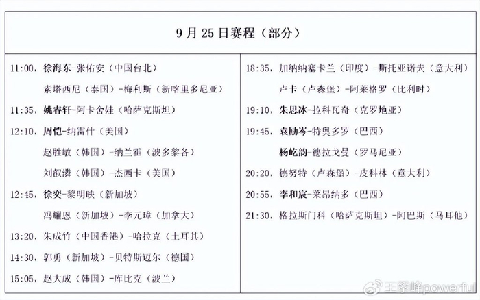 19:45,袁励岑VS特奥多罗(巴西)、杨屹韵VS德拉戈曼(罗马尼亚);